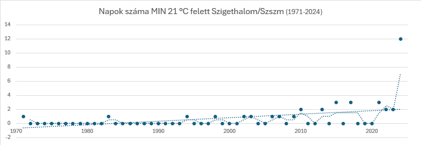 A napi minimumok legmagasabb értékei (lambda 19.0, fi 47.3)